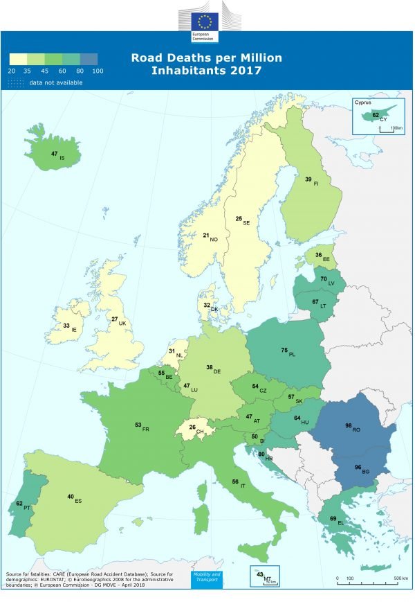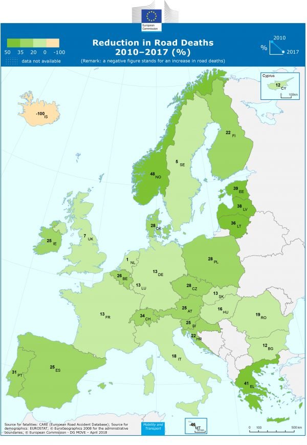 Στις αρχές Απριλίου η Κομισιόν δημοσίευσε ετήσια έκθεση «ROAD SAFETY IN THE EUROPEAN UNION» σχετικά με την οδική ασφάλεια στην Ευρώπη για το 2017 .