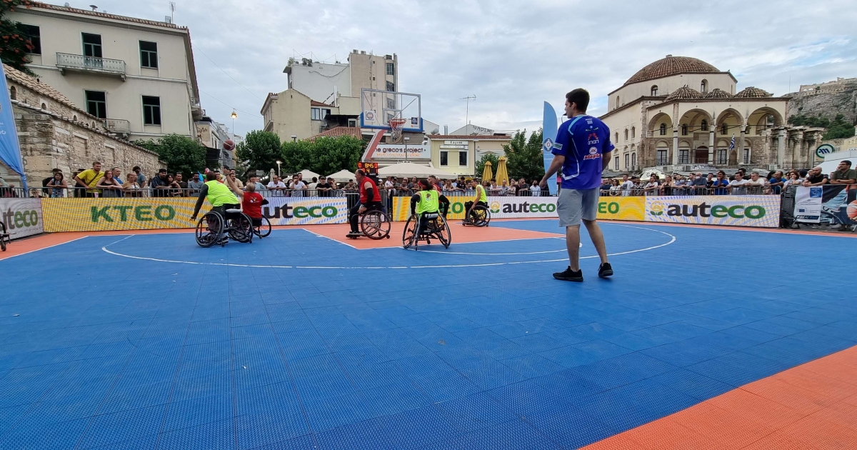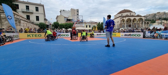 Σε ένα από τα πιο κεντρικά σημεία της πόλης, με φόντο την Ακρόπολη, πραγματοποιήθηκαν αγώνες 3on3 με τη συμμετοχή 200 και πλέον αθλητών από 19 σωματεία αθλητών μπάσκετ με αναπηρία.