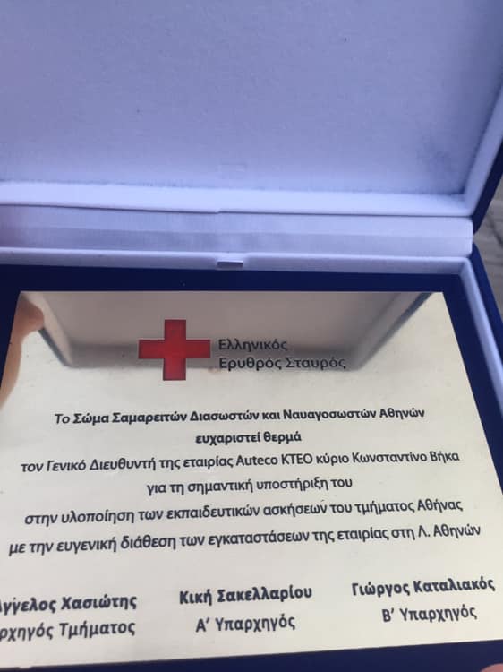Το Σώμα Σαμαρειτών Διασωστών και Ναυαγοσωστών Αθηνών απένειμε τιμητική πλακέτα στον Γενικό Διευθυντή κo Κωνσταντίνο Βήκα για την συμβολή της Auteco στο έργο του Ελληνικού Ερυθρού Σταυρού.